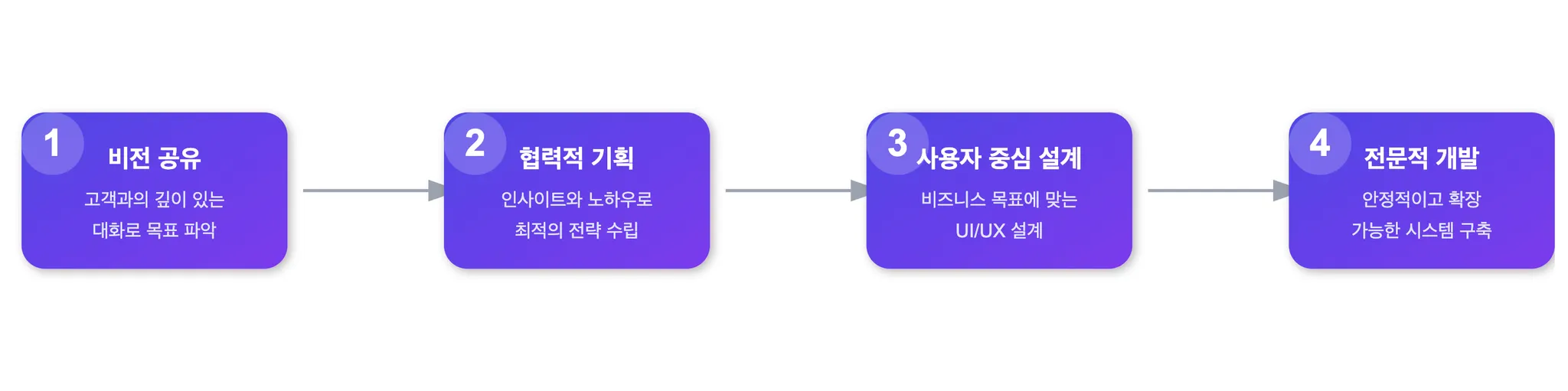 단순 ‘기능 구현’을 넘어, 고객의 사업 성공을 목표로 합니다.