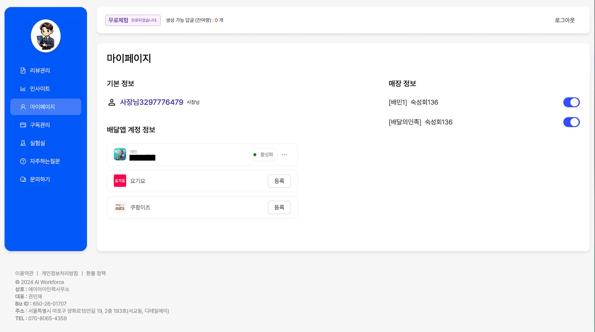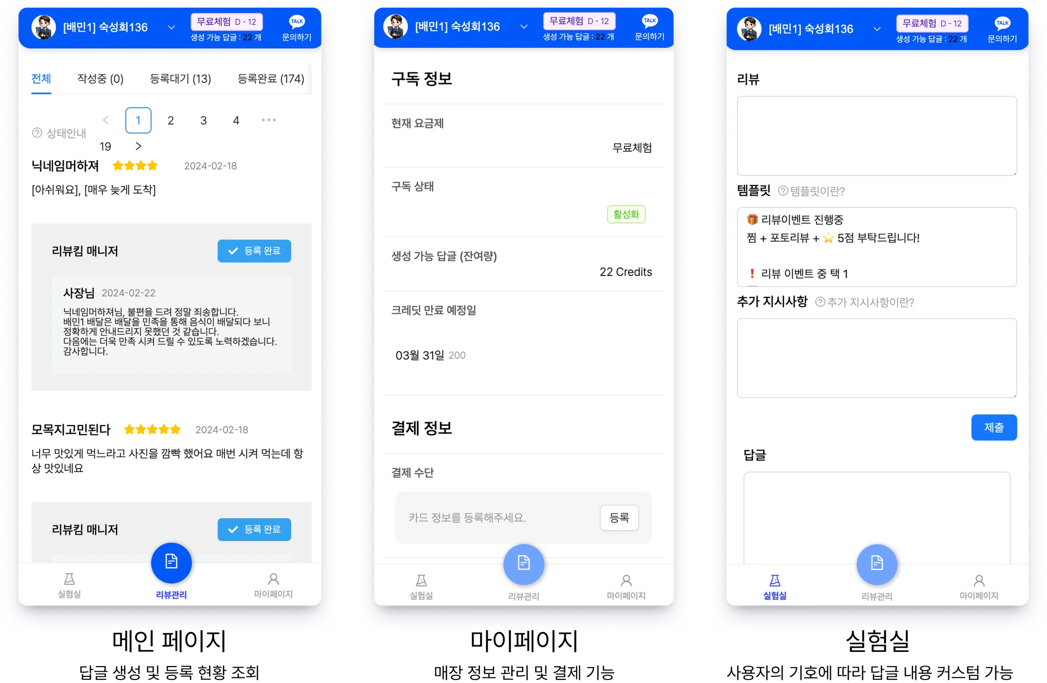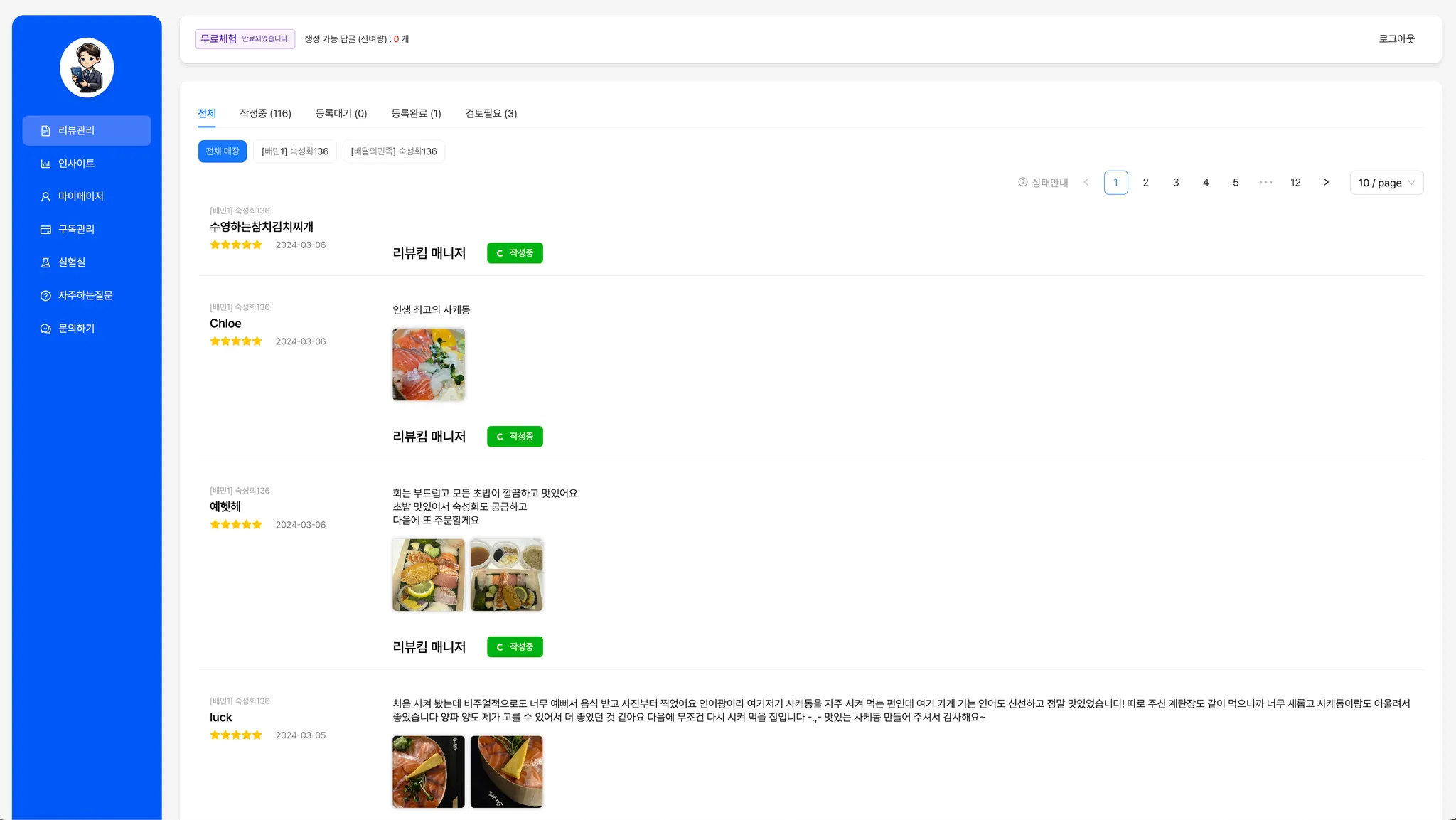 배달 플랫폼 리뷰 답글 자동 작성 서비스 리뷰킴(