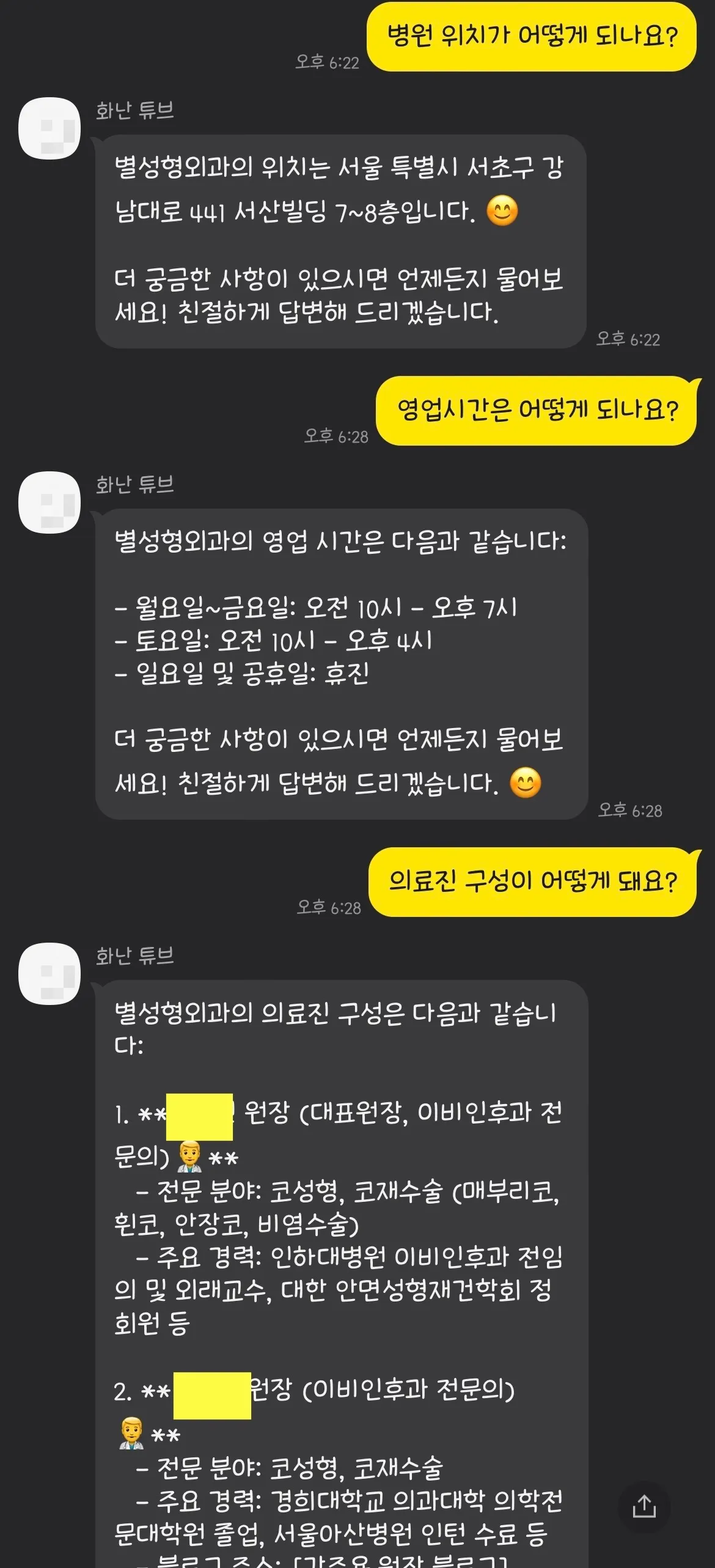 서초구 별성형외과의원의 고객 응대 업무 자동화를 위한 AI챗봇 제작